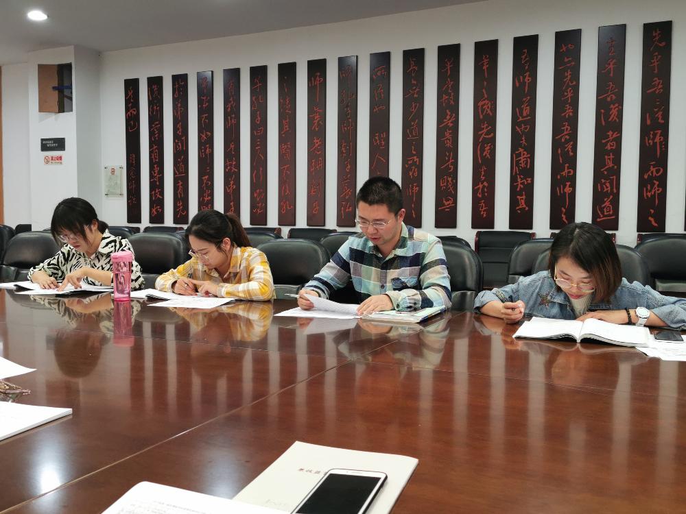 会议第一部分的最后一个环节,是由黄锦龙老师代表教研组长对本次摸底考成绩进行分析和反思。黄锦龙老师从试卷难度、数学成绩各分数段情况,以及学生在学习高中数学时的一些普遍问题做了分析和总结,提出数学老师们需要更深入地去了解学生,掌握学生学习数学的困难,找到落后症结所在,对症下药。随后,汤恒琦老师对黄锦龙老师提出的问题和思考做了一些补充,提出数学老师们将对学生缺预习、少巩固、重模仿轻理解的不良学习习惯进行全面改造,帮助学生早日适应高中数学学科的学习。
